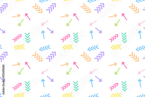 Seamless pattern featuring vibrant arrows in various colors and directions on a clean white background.