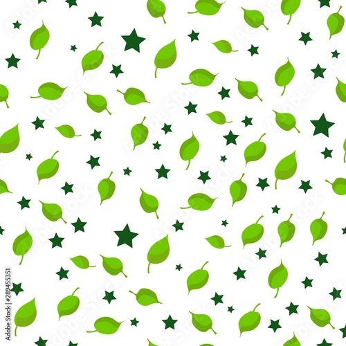 Seamless pattern for greeting cards for World Vegetarian Day and Vegan. Leaves and stars on a white background..