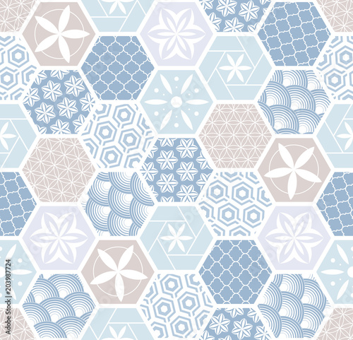 Seamless pattern for tiles in the bathroom. Drawing for home textiles. Pattern made of hexagons.