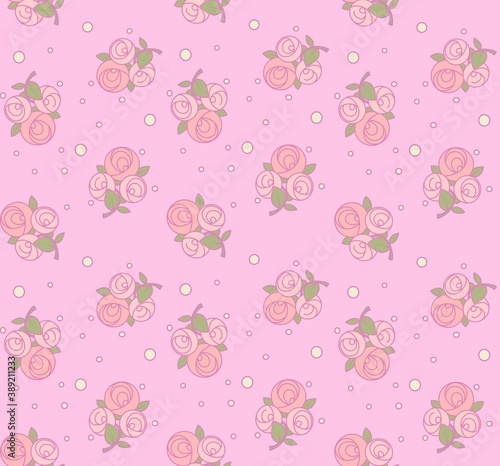 Seamless pattern from roses with pink outline on a pink background