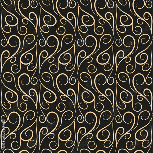 Seamless pattern, golden linear pattern, monogram on a dark background. Design for banner, leaflet, print, poster, wallpaper, fabric. Abstract geometry.