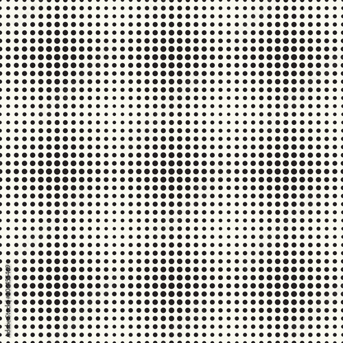 Seamless pattern halftone design. Modern textile print with black dots. Vector fashion background. Grid of circles.