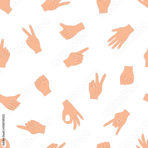 Seamless pattern Hand gestures, vector illustration set of icons of various hand signs.