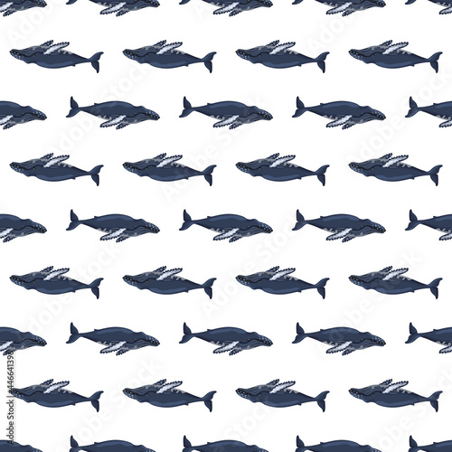 Seamless pattern Humpback whale on white background. Template of cartoon character of ocean for children.