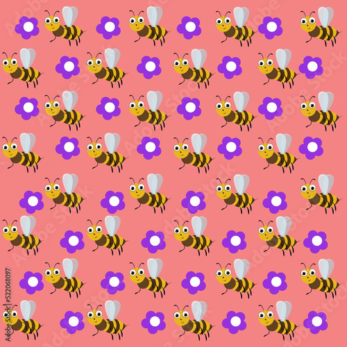 seamless pattern illustration of a bee on a lilac background. Design element for printing on children's clothes, dishes, napkins, for a holiday, wrapping paper.