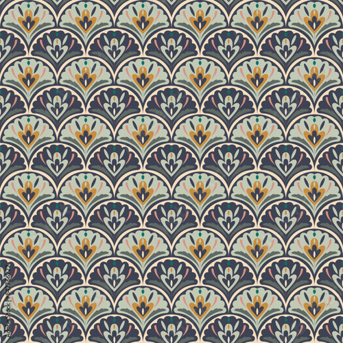 Seamless pattern in art deco style. Pastel colors. For bed linen, fabric, wallpaper, packaging