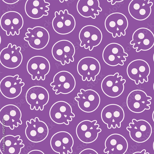 seamless pattern of a skull head with a white outline style on a purple background, suitable for designing textiles, clothes, fabric, fashion, wrapping paper and others