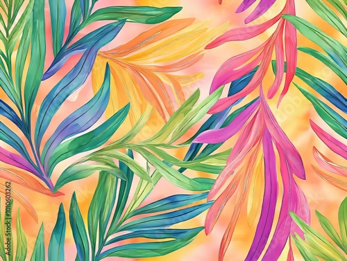 Seamless pattern of a vibrant watercolor foliage pattern with colorful leaves on a soft background, ideal for nature-themed projects.