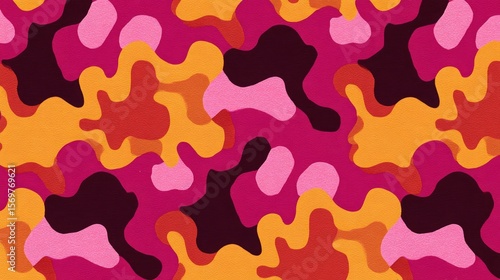 Seamless pattern of abstract gradient blobs and organic shapes in bright tones