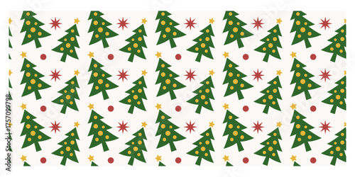 Seamless Pattern of Bright Green Christmas Trees for Holiday Wrapping Paper and Winter Design