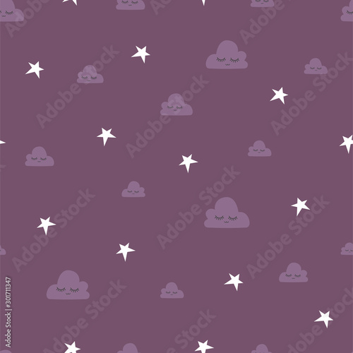 Seamless pattern of clouds and stars