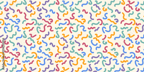 Seamless pattern of colorful, playful squiggles. kids' designs, fun backgrounds