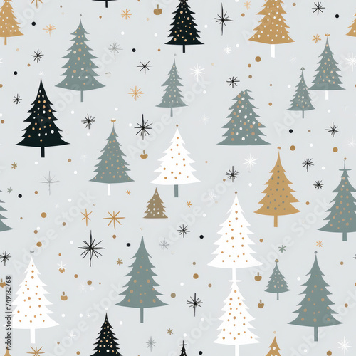seamless pattern of cute silver Christmas trees, stars and snowflakes