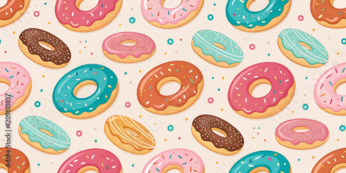 Seamless Pattern of Cute Sweet Donuts for Fun Designs