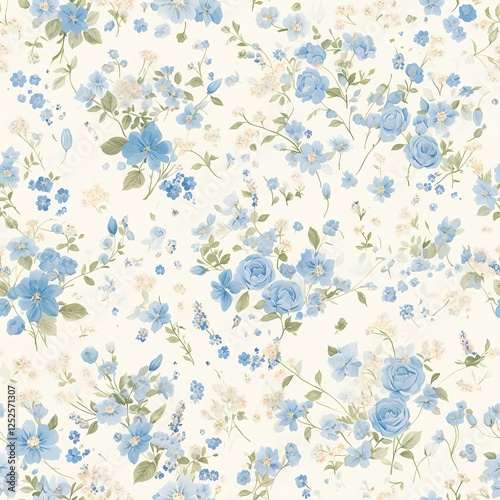Seamless pattern of delicate watercolor roses in soft blue and chartreuse blending fluid brushstrokes into a light elegant atmosphere