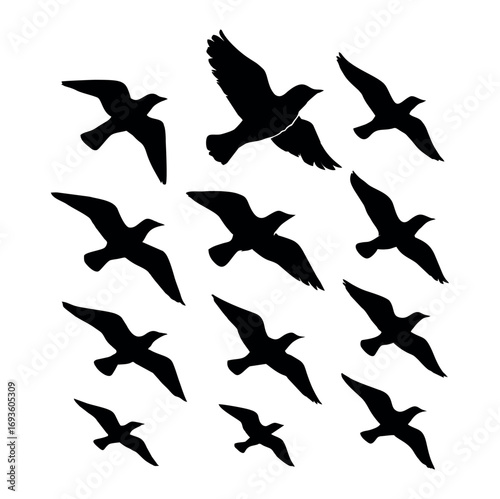 Seamless Pattern of Flying Birds Silhouette on White Background