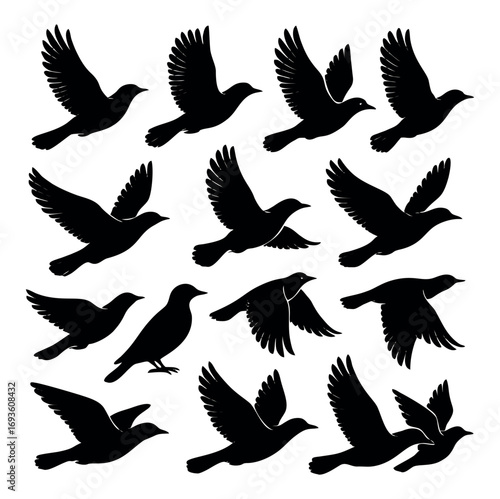 Seamless Pattern of Flying Birds Silhouette on White Background