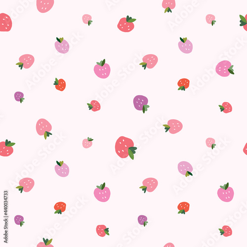 Seamless Pattern of Hand Drawn Strawberry Design on Light Pink Background