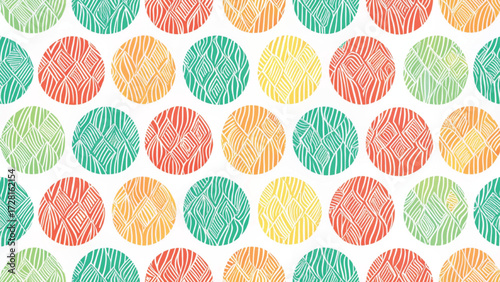 Seamless pattern of hand-drawn crosshatch circles in different soft pastel colors background
