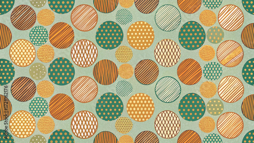 Seamless pattern of hand-drawn crosshatch circles in different soft pastel colors background