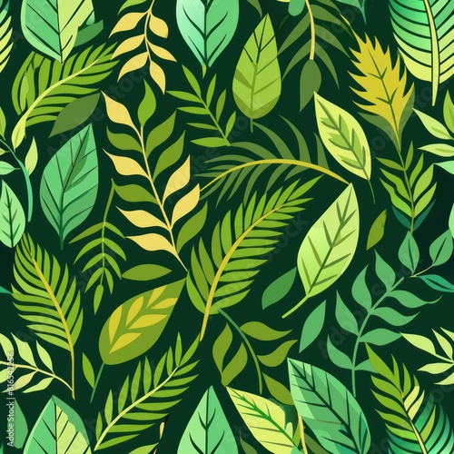 Seamless pattern of paper cutout leaves and branches, creating a lush and verdant backdrop for your gift wrap, Generative AI
