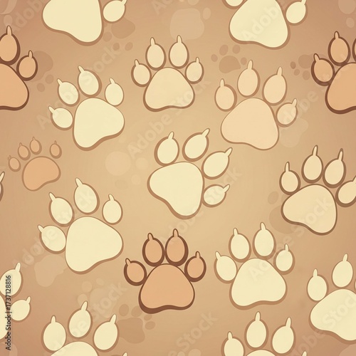Seamless Pattern of Paw Prints in Warm Beige and Orange Tones