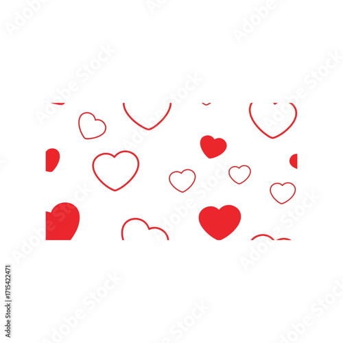 Seamless pattern of red and outline hearts various sizes romantic valentine day celebration vector