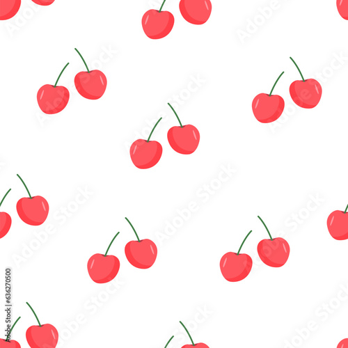 Seamless pattern of red cherry berries. Summer background with berries wallpaper.