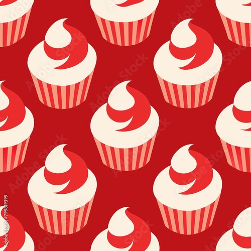 Seamless pattern of red velvet cupcakes swirled with cream cheese frosting, Generative AI