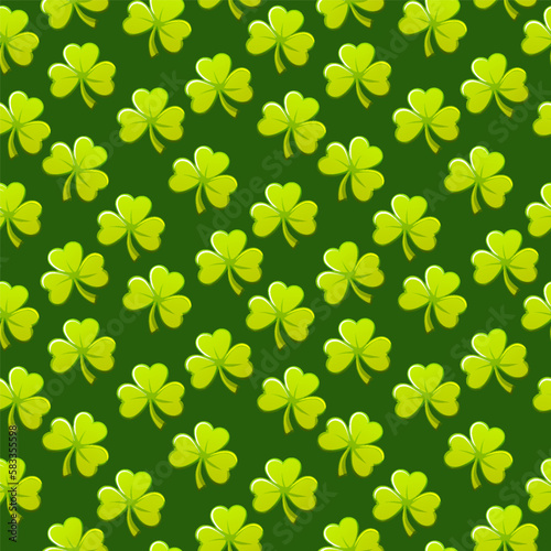 Seamless pattern of shamrock or clover. Seamless green background for St. Patrick day. Lucky background