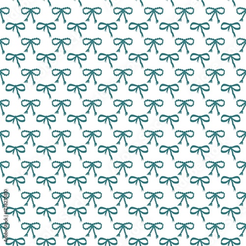 Seamless pattern of turquoise bows on a white background for Christmas craft and design projects
