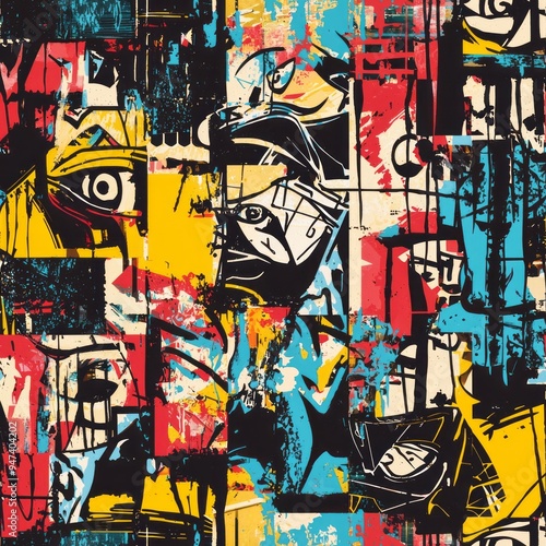 Seamless pattern of urban murals and street art collages