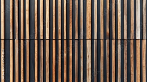 Seamless pattern of vertical wooden slats on sleek modern wall panels, ideal for architectural and design backgrounds