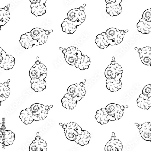 Seamless pattern of vintage hand drawn balls and sheep toys. Christmas and New Year design elements