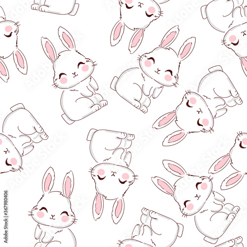 Seamless Pattern Rabbit. Hand Drawn Bunny, print design rabbit background. Vector Seamless. Print Design Textile for Kids Fashion.