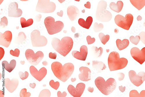 Seamless pattern red heart watercolor illustration on pink background. Valentine day, anniversary, wedding, women's, mother's day concept. Romantic love backdrop with copy space