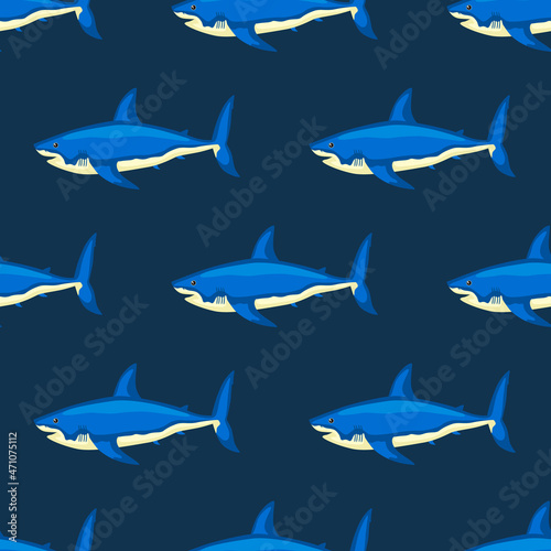 Seamless pattern shark on dark blue background. Texture of marine fish for any purpose.