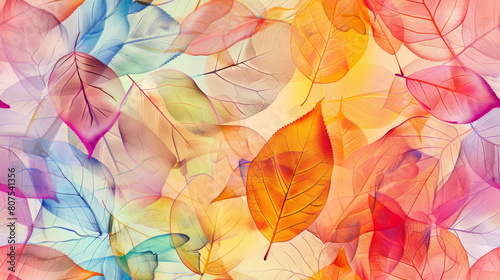 Seamless pattern. Translucent leaves in rainbow colors, perfect for themes related to transparency and nature.