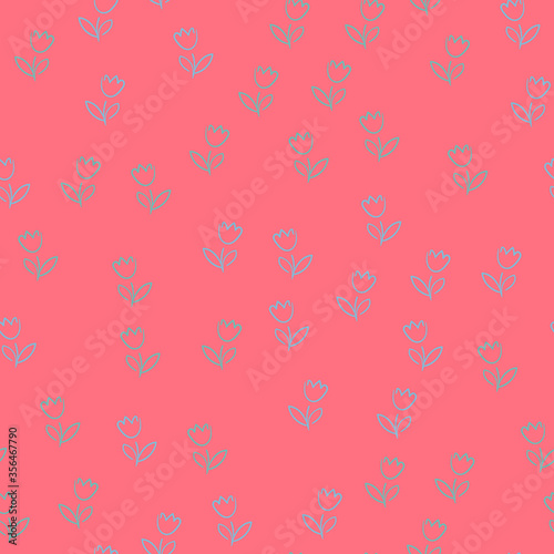 Seamless pattern tulip flower simple vector doodle on pink background