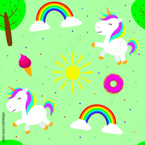 Seamless pattern vector cute unicorn children illustration print on fabric wallpaper on the wall textile greeting cards scrapbooking