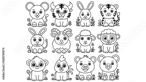 Seamless pattern vector illustration set of funny baby animal cartoon character heads