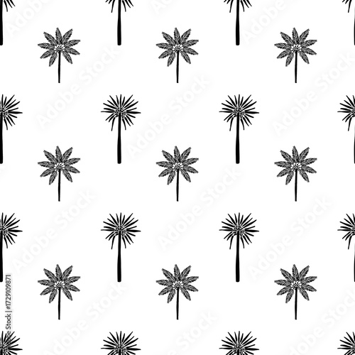 Seamless pattern watercolor sea coastal themed. Palm tree