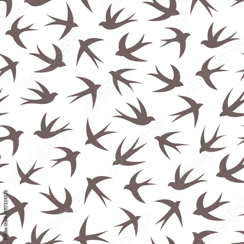 Seamless pattern with a flock of swallows. Vintage background of silhouettes of birds in the sky. Vector illustration.