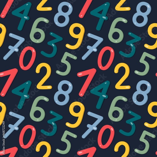 Seamless pattern with a set of colored numbers for kids. Bright colors, can be used in textiles, wrapping paper and wallpaper. Vector illustration