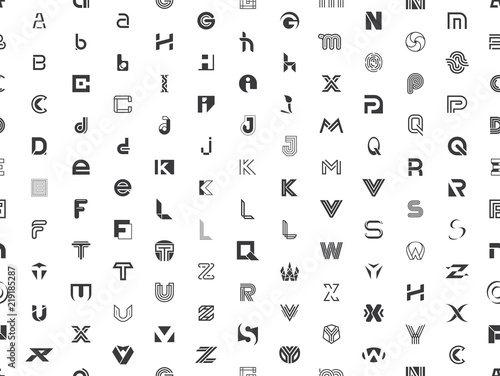 Seamless pattern with Abstract logos with letters. Isolated on White background