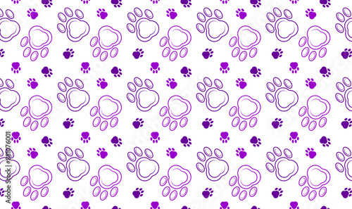 Seamless pattern with animal tracks. Paw prints of a cat or dog on a white background. Design for veterinary clinics. Pattern of fabric, wrapping paper, cover. Vector graphics