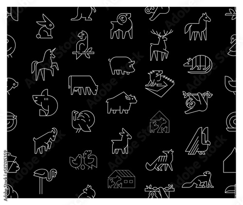 Seamless pattern with Animals logos. Animal logo set. Geometrical abstract logos. Icon design