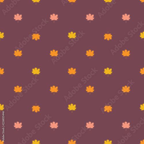 Seamless pattern with autumn maple leaves. Yellow, orange and pink leaves on lilac background. Vector illustration
