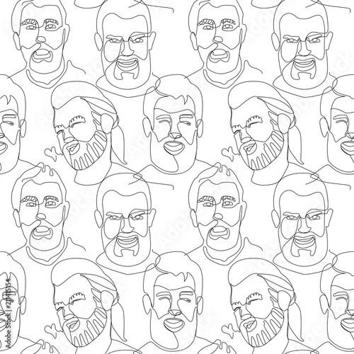 Seamless Pattern with Bearded Man Portrait One Line Art. Male Facial Expression. Hand Drawn Linear Man Silhouette Background. Vector illustration