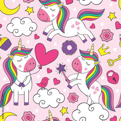 seamless pattern with beautiful little unicorns - vector illustration, eps